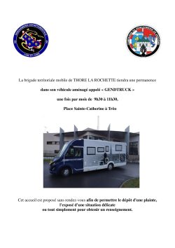 Une fois par mois, de 9h30 à 11h30, la brigade de gendarmerie de Thoré-la-Rochette assurera une permanence, place Sainte-Catherine, dans leur camping-car aménagé dénommé GENDTRUCK.